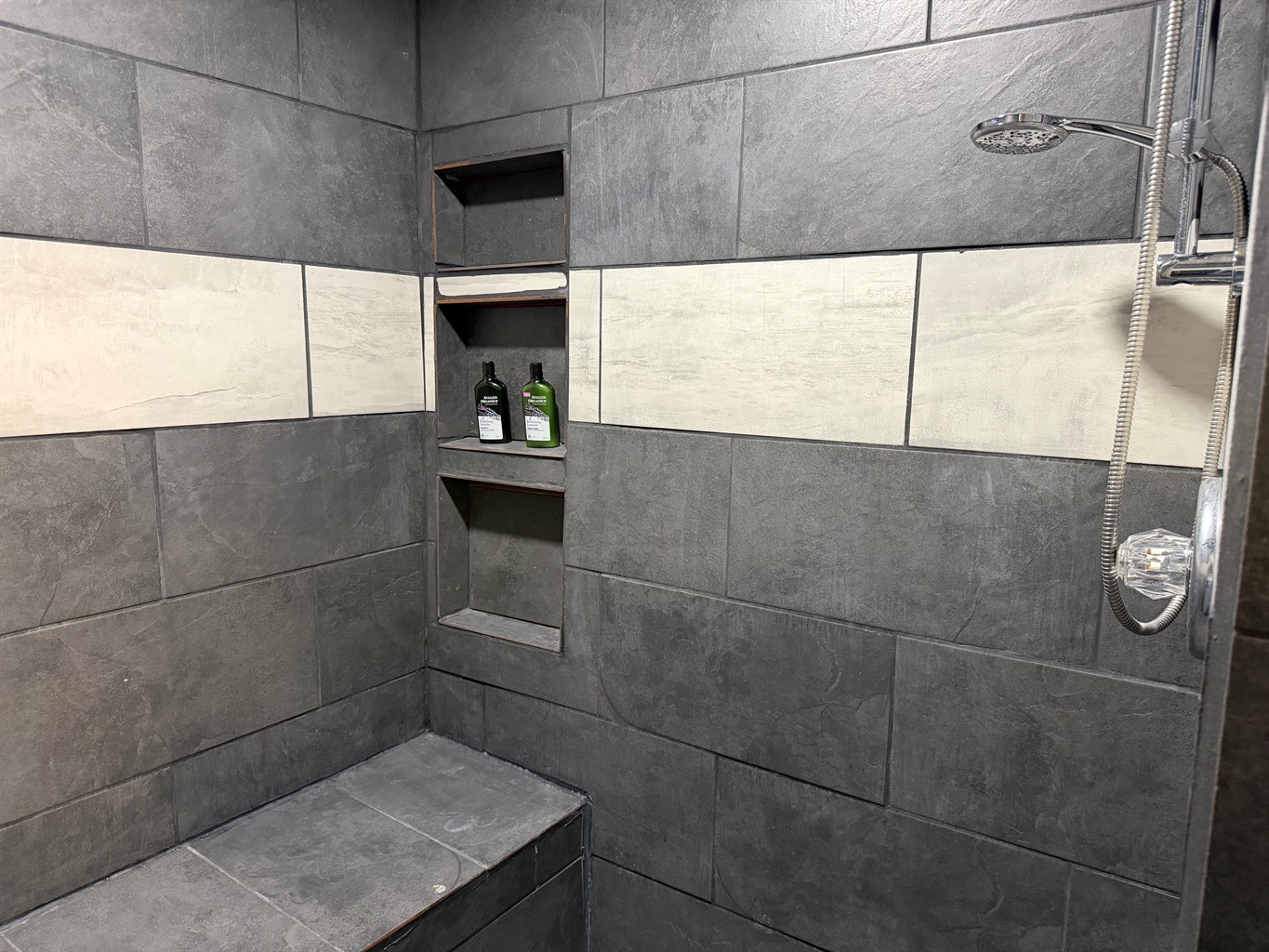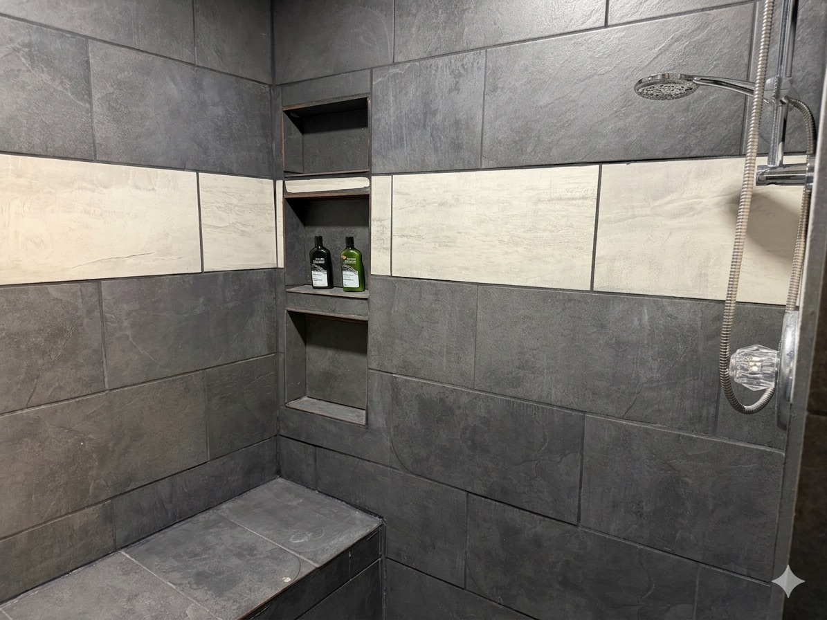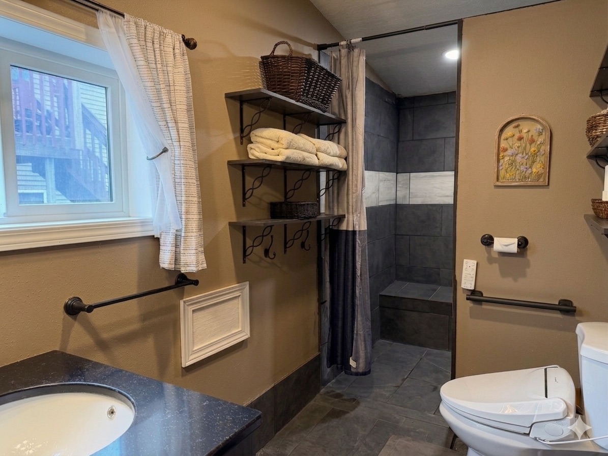 The layout is simple and accessible, with all living spaces on one level and just a single step to enter. The walk-in tile shower is spacious and easy to use, whether independently or with assistance, making the home a practical option for guests who value a more accessible environment.